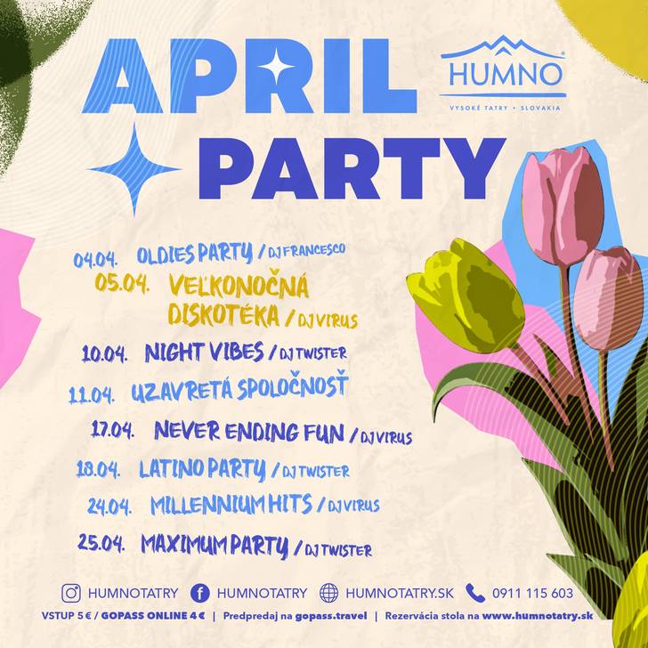 Zabavte sa na najlepšich párty pod Lomnickým štítom. Vstup na párty si môžete zakúpiť online vopred a výhodnejšie na www.gopass.travel alebo priamo na mieste za 5€