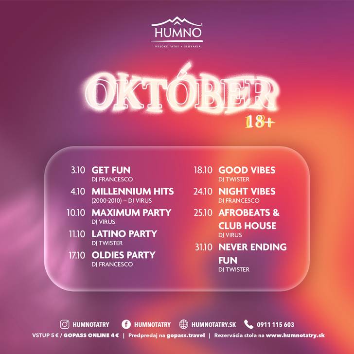 Music Pub HUMNO Tatry—tanec a hudba v Tatrách. Pridaj sa k nám a zabávaj sa naplno v HUMNO v Tatranskej Lomnici.