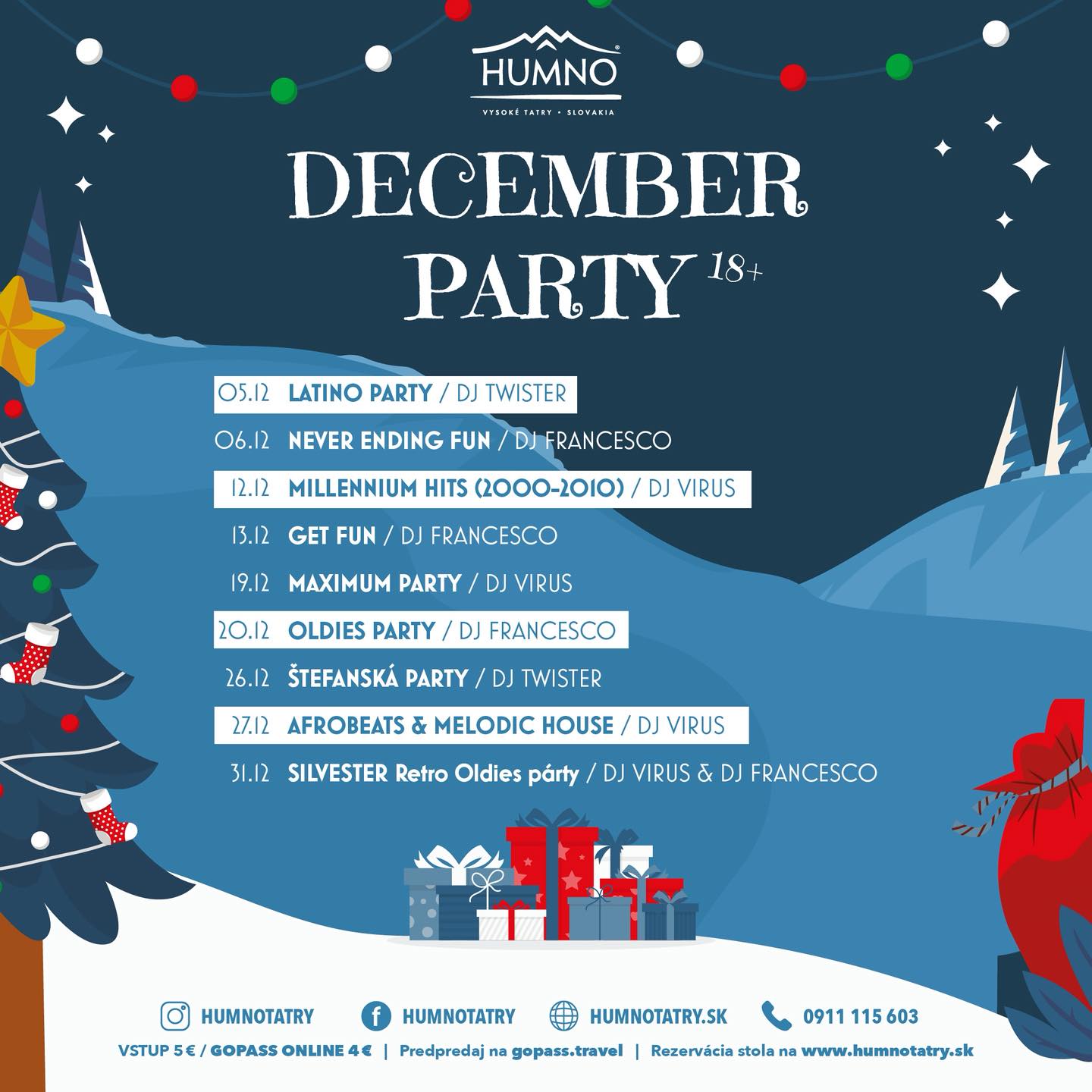 Zabavte sa na najlepšich párty pod Lomnickým štítom. Vstup na párty si môžete zakúpiť online vopred a výhodnejšie na www.gopass.travel alebo priamo na mieste za 5€